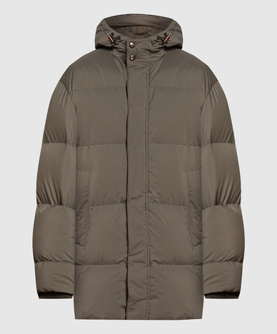 Детская бежевая пуховая куртка с нашивкой логотипа
