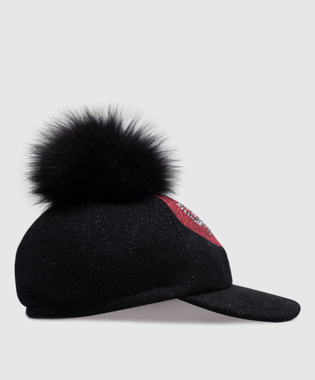 Детская черная кепка из шерсти мериноса с люрексом