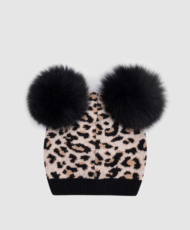 Детская черная шапка из мериноса шерсти с анималистическим узором