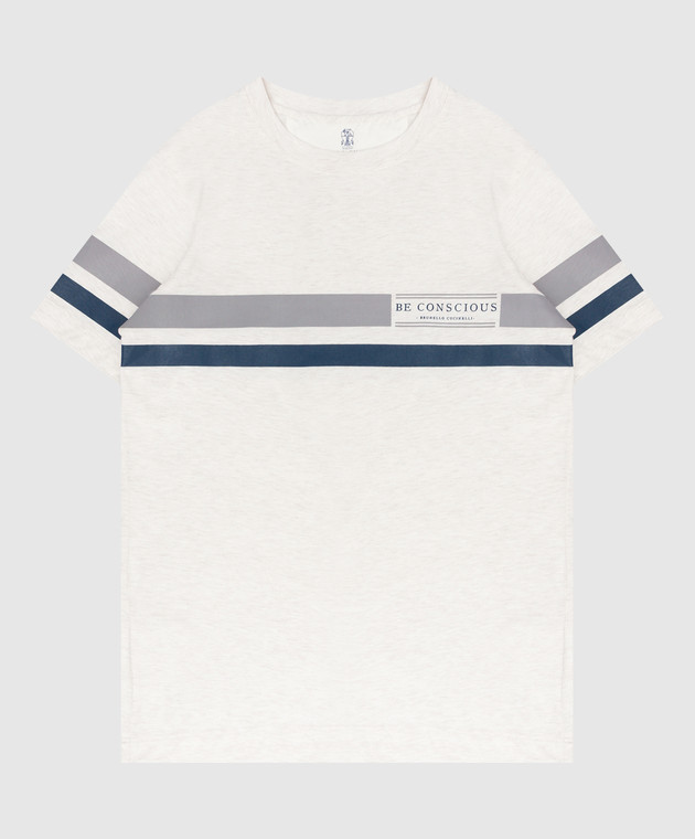 Детская светло-бежевая меланжевая футболка с принтом логотипа