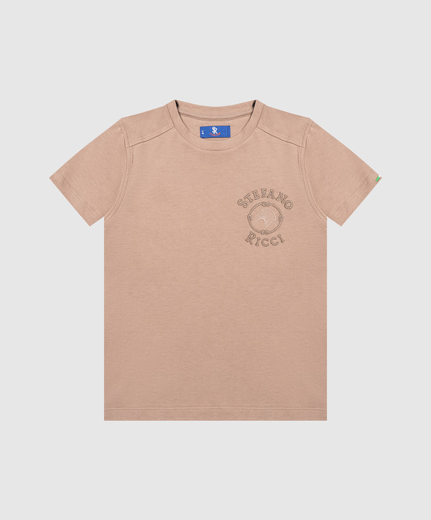 Детская коричневая футболка с вышивкой логотипа