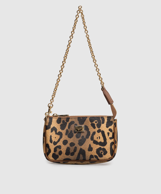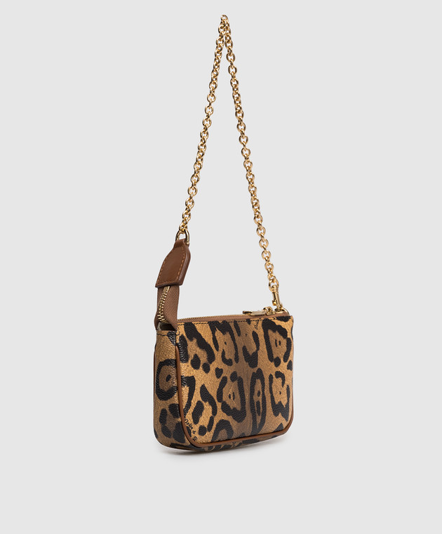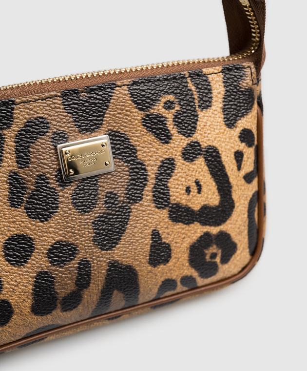 Детская коричневая кожаная сумка в анималистическом принте с логотипом