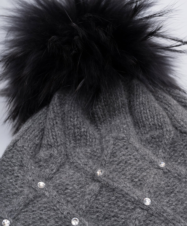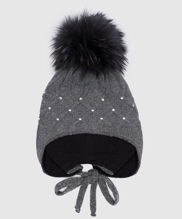 Детская серая шапка из шерсти и кашемира с мехом с кристаллами
