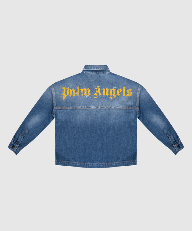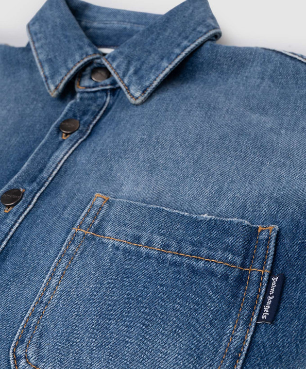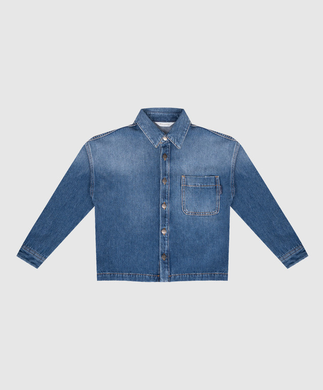 Детская синяя джинсовая куртка с логотипом и прорехами