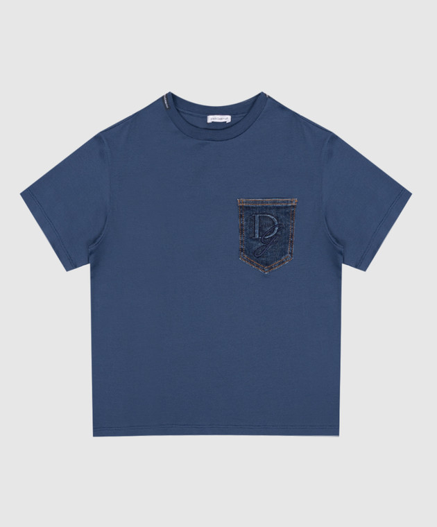 Детская синяя футболка с фактурной вышивкой монограммы логотипа