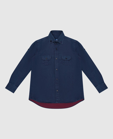Детская синяя рубашка с льна
