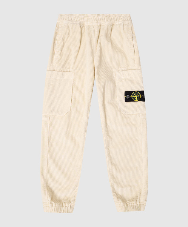 Детские бежевые вельветовые джогеры с патчем логотипа