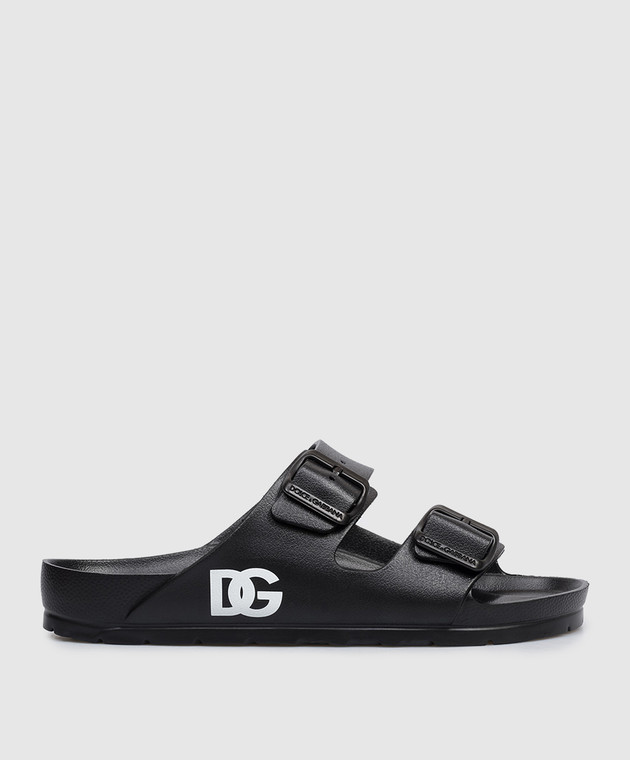 Детские черные шлепанцы с монограммой логотипа DG