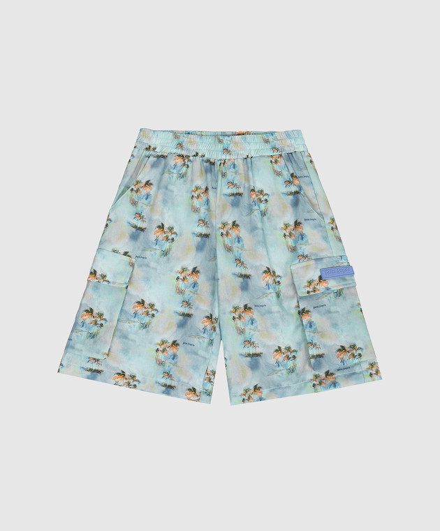 Детские голубые шорты-карго в принт