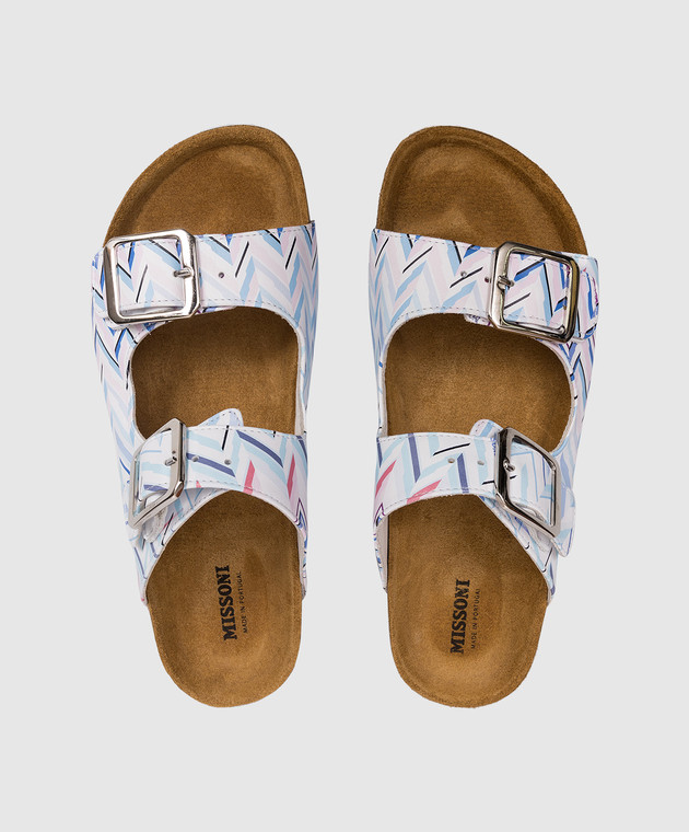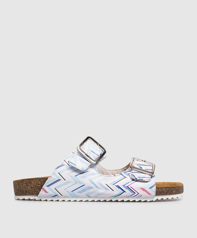 Детские кожаные шлепанцы с брендовым принтом