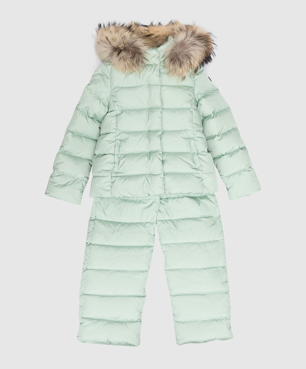 Детский мятный комплект комбинезон и пуховик с мехом енота