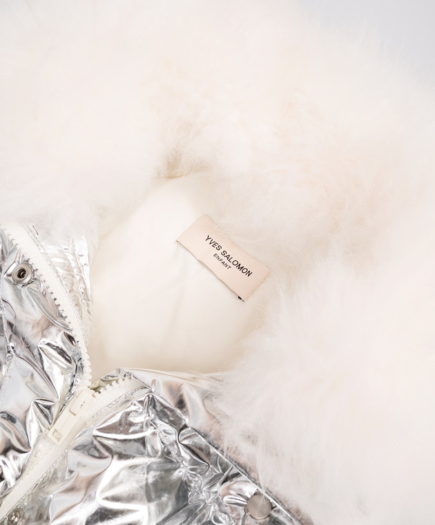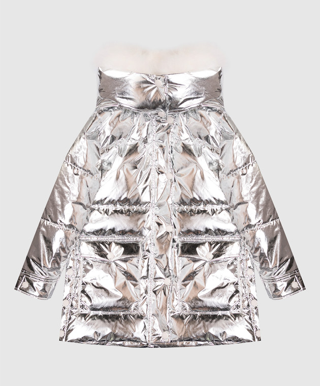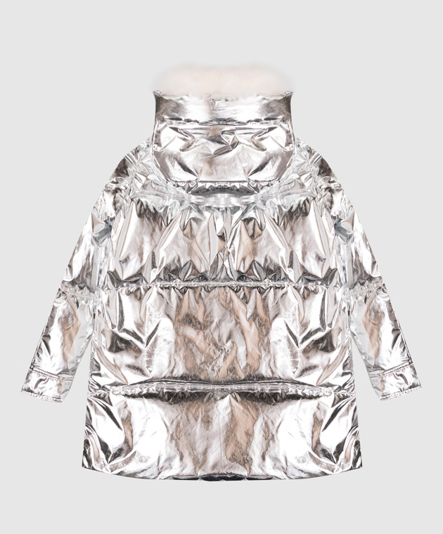 • Декор простушка в виде горизонтальных полос, эффект металлик, съемный воротник с овчиной