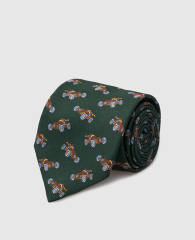 Детский зеленый шелковый набор из галстука и платка-паше в узор