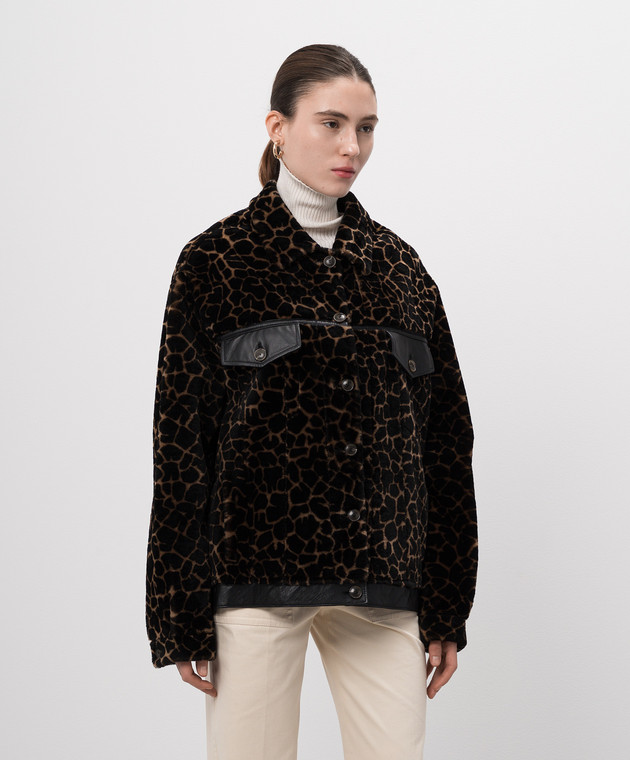 Коричневая дубленка Jenny в анималистичный узор