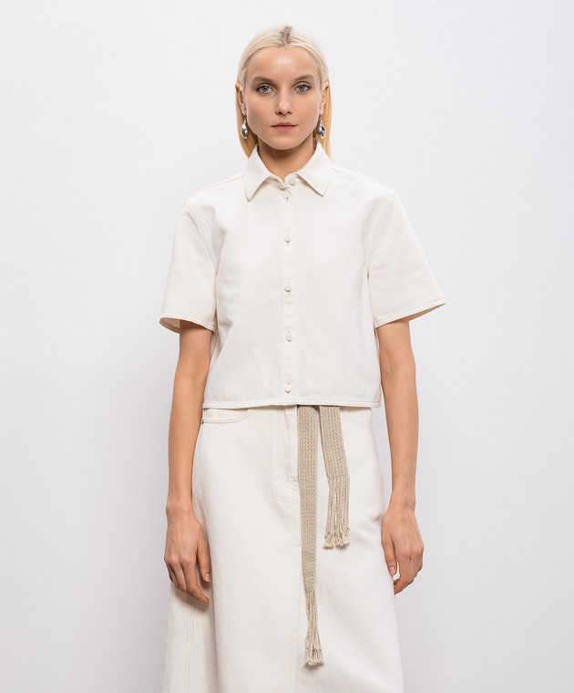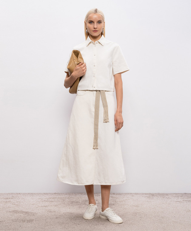 Джинсовая рубашка цвета айвори с льном