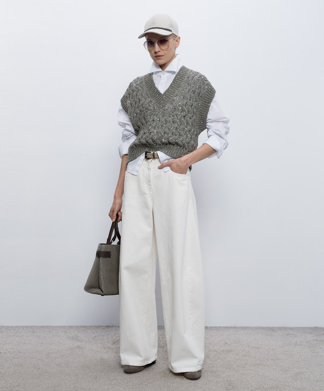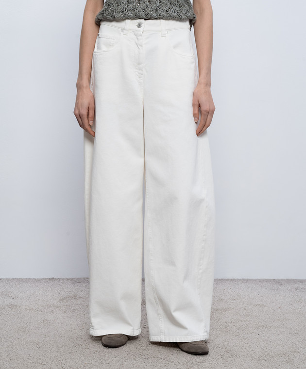 Джинсы Wide Barrel цвета айвори с логотипом патча