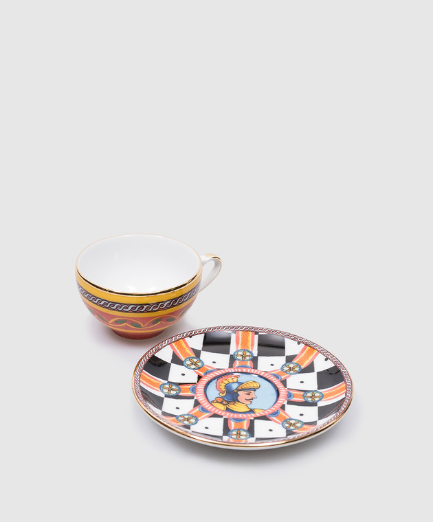 Фарфоровый набор из чашки и блюдца с принтом Carretto Siciliano