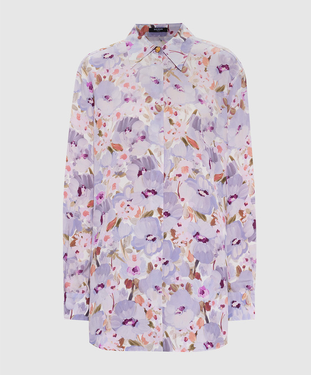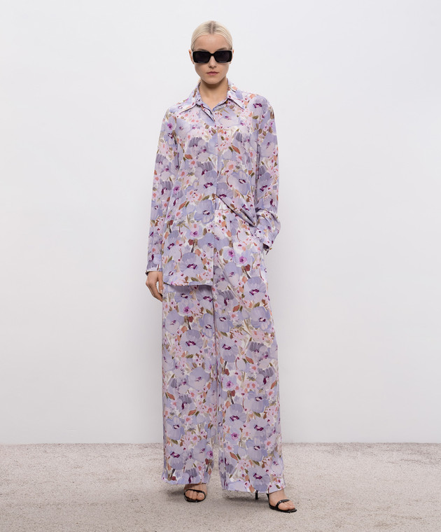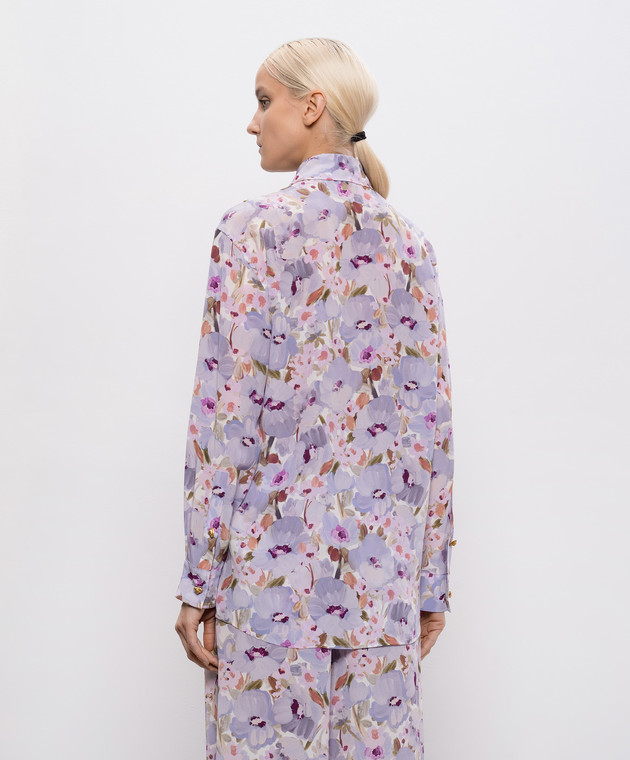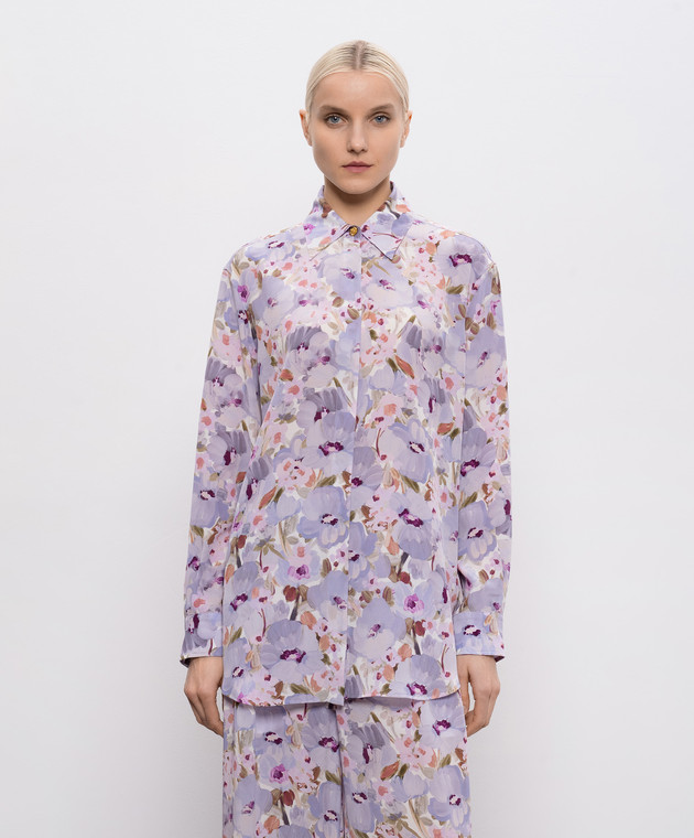 Фиолетовая блуза из шелка в цветочный принт