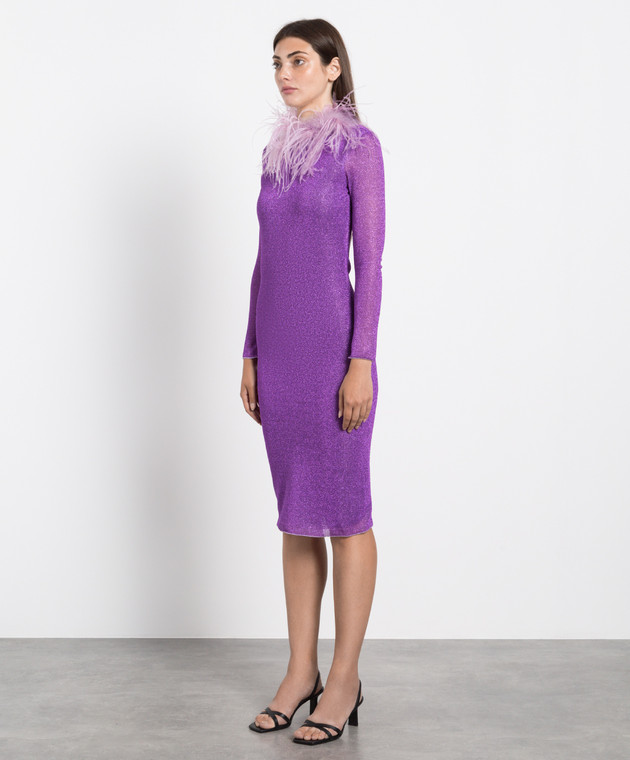 Фиолетовое платье HS22 Lumiere Plumage со страусиными перьями