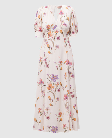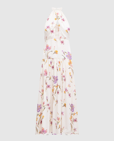 • Декор: воротник-халтер, цветочный принт, драпирование