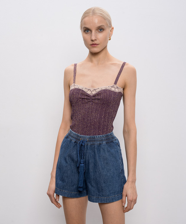 Фиолетовый топ в рубчике с люрексом