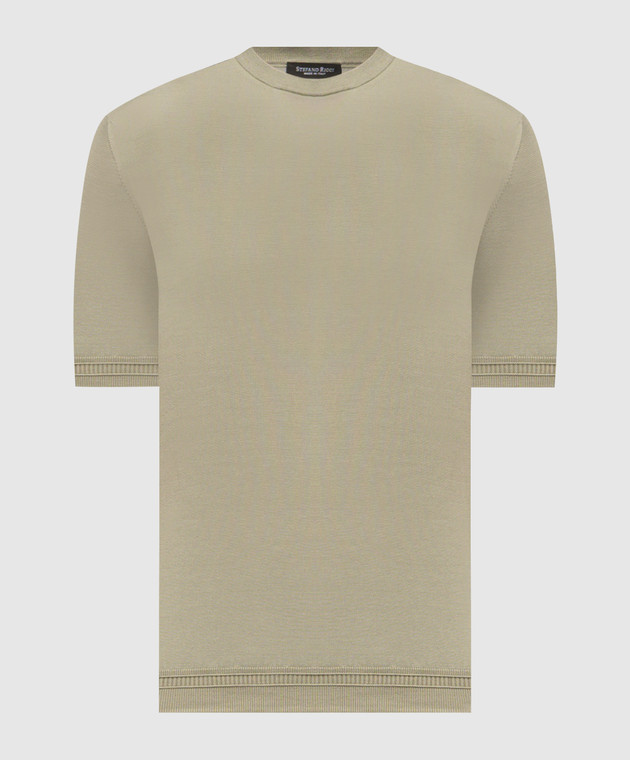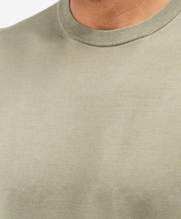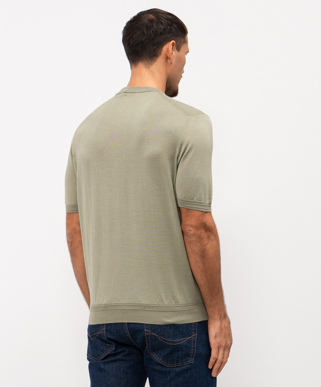 Футболка цвета хаки из шелка с вышивкой логотипа