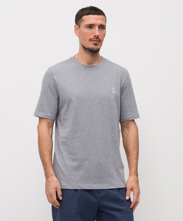 Футболка серого цвета с принтом эмблемы