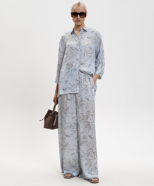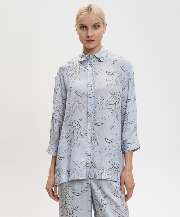 Голубая блузка в принт с цепочкой мониль
