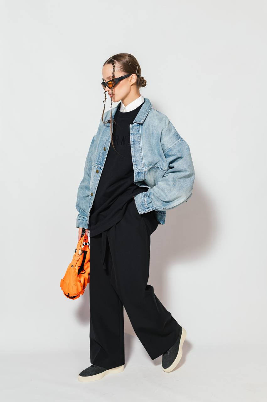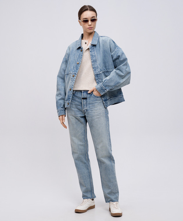 Голубая джинсовая куртка с эффектом потертости