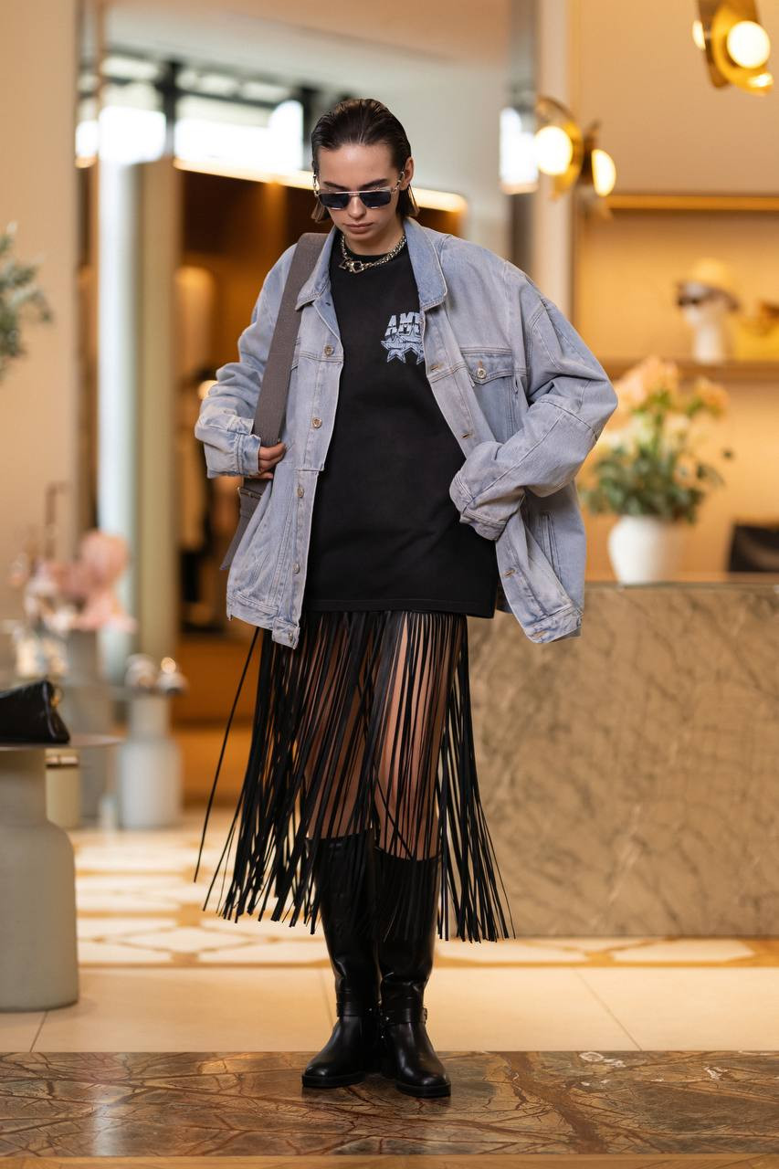 • Декор эффект потертости, брендированные пуговицы, асимметричный низ