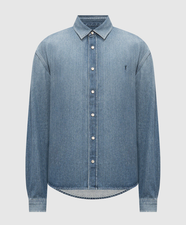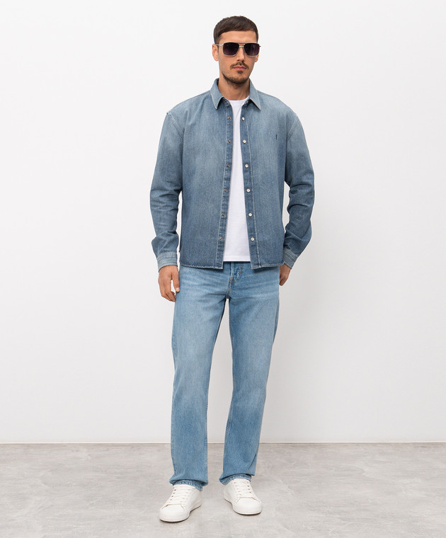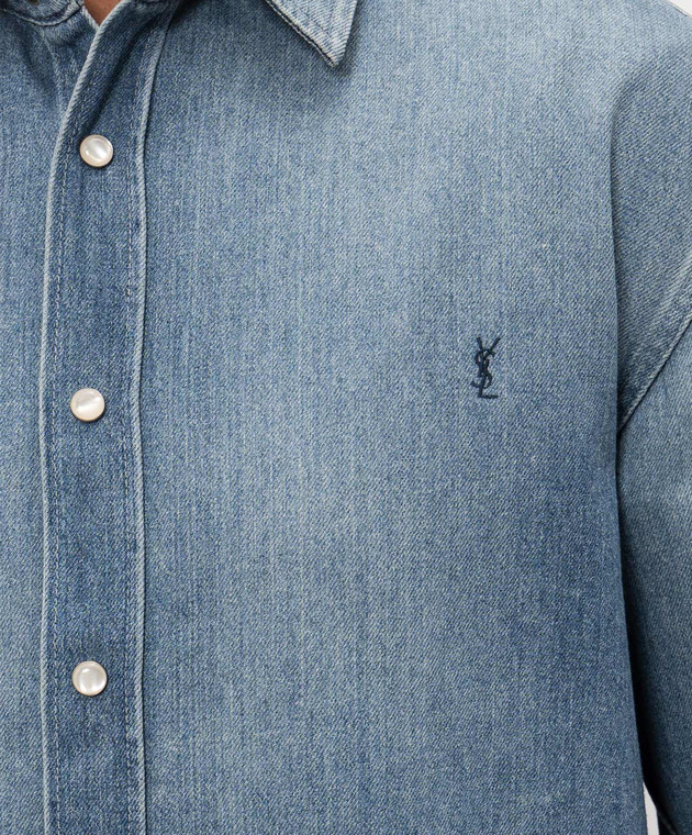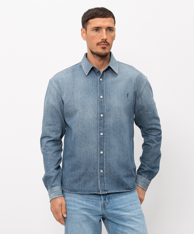 Голубая джинсовая рубашка с эффектом потертости