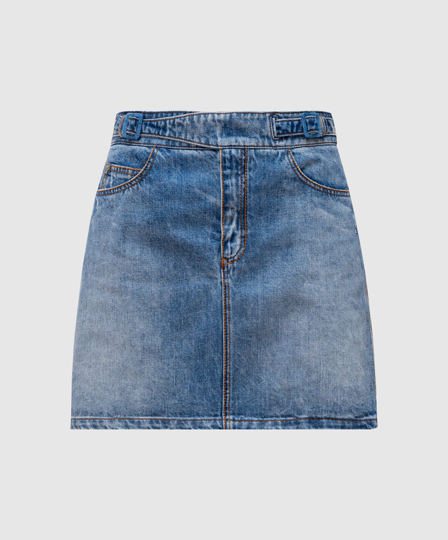 Голубая джинсовая юбка мини с кожаным патчем логотипа