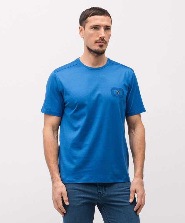 Голубая футболка с вышивкой логотипа