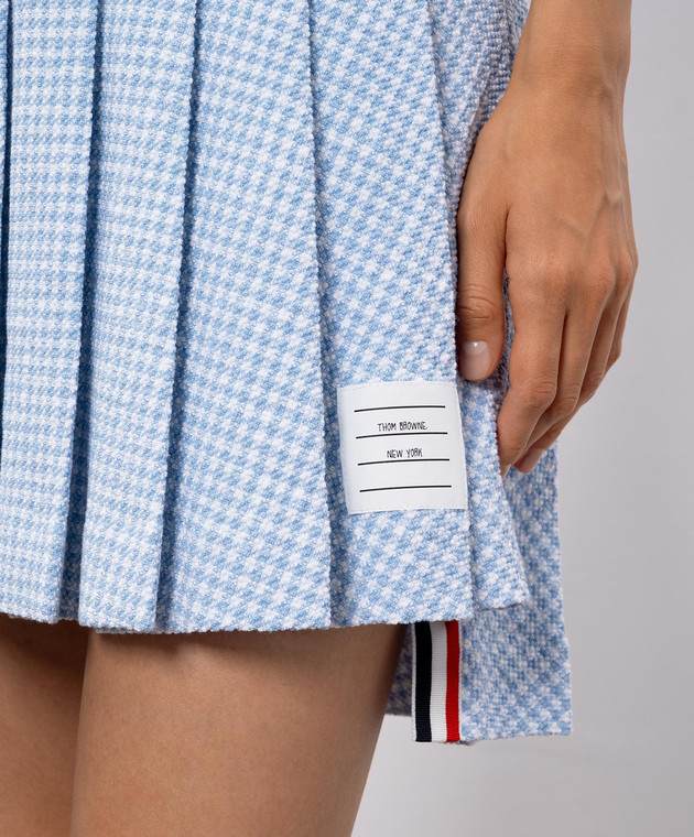 Голубая твидовая юбка-плиссе в клеточку