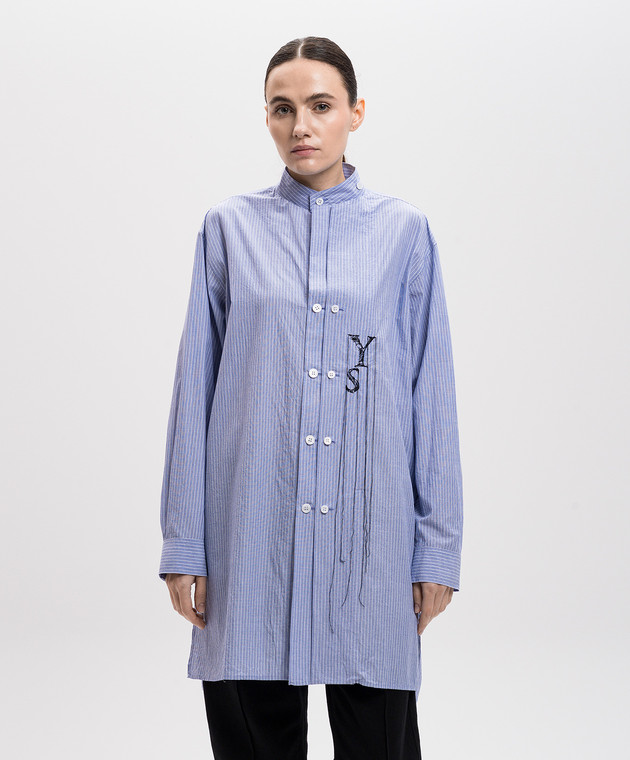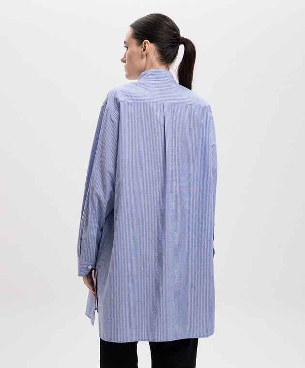 Голубая удлиненная рубашка в полоску с монограммой логотипа