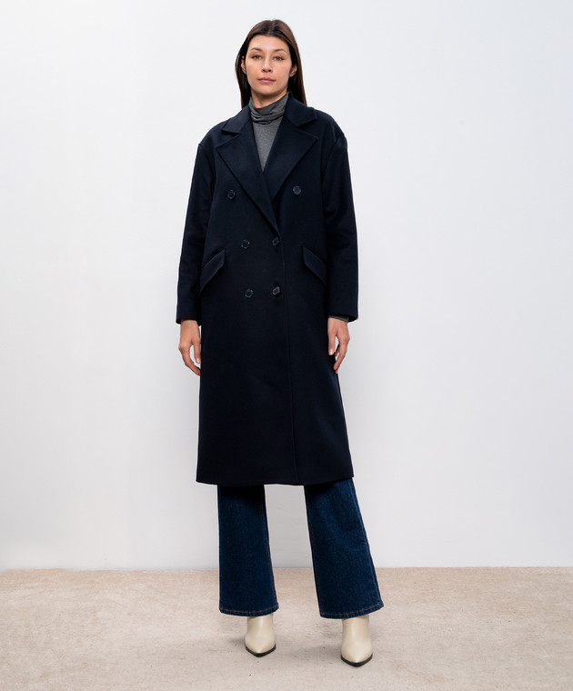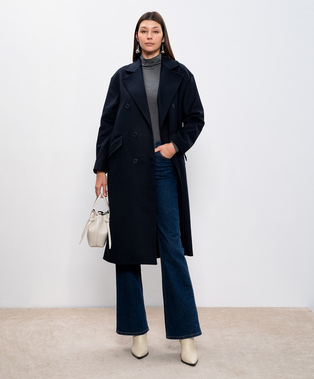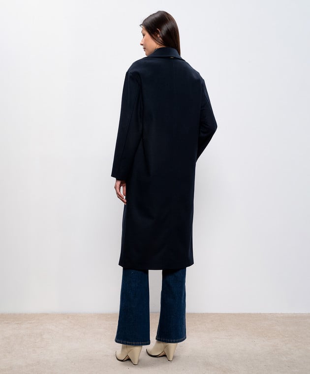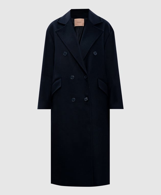 Голубое двубортное пальто с шерстью
