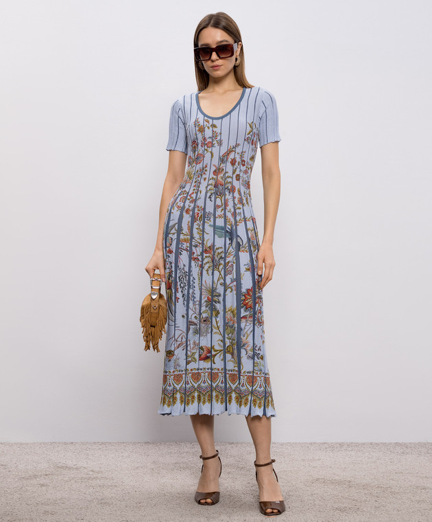 Голубое платье миди в принт