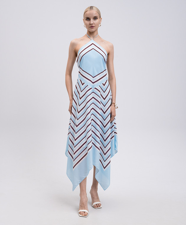 Голубое платье миди с шелком