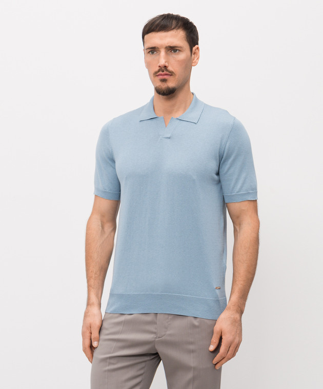 Голубое поло с шелком
