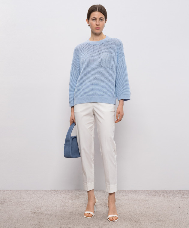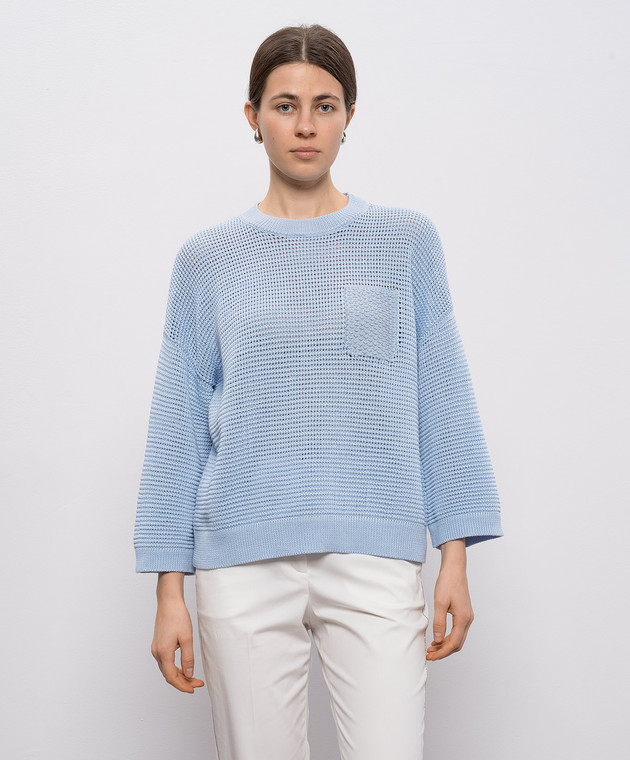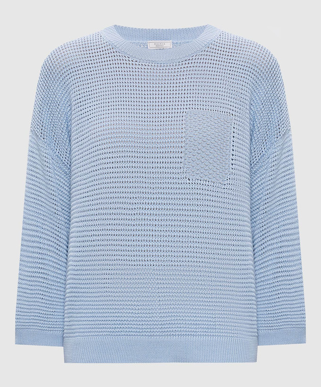 Голубой ажурный джемпер с цепочкой