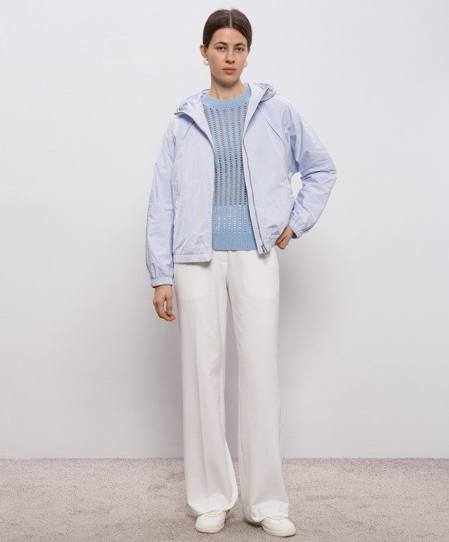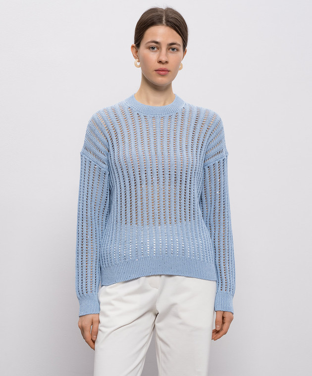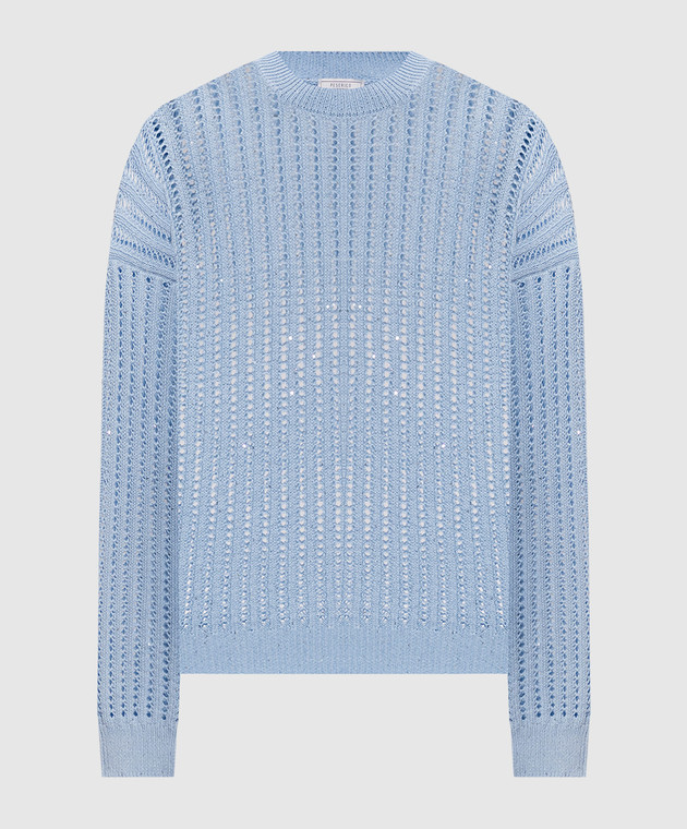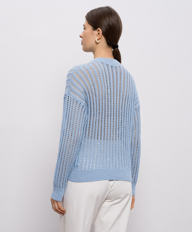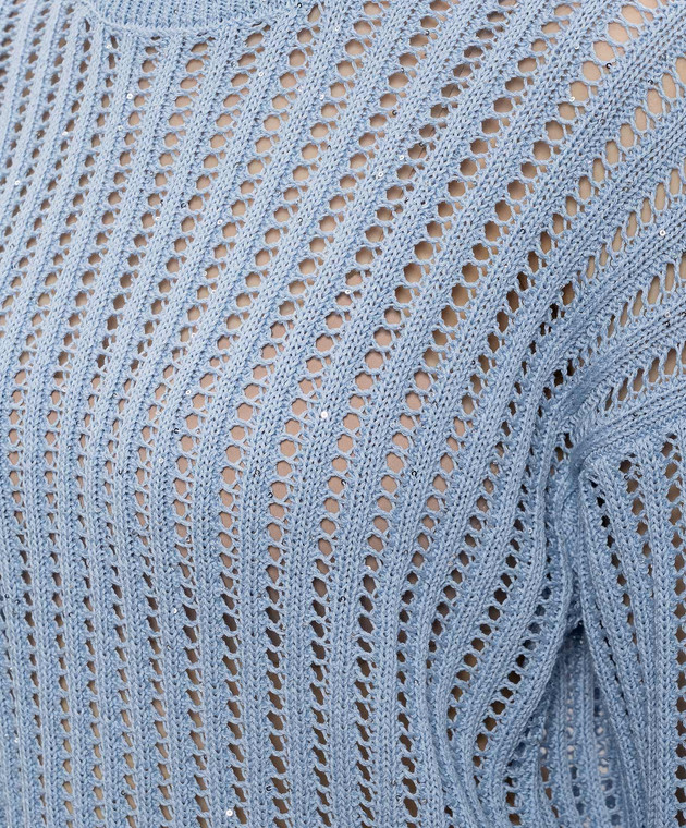 Голубой ажурный джемпер с пайетками