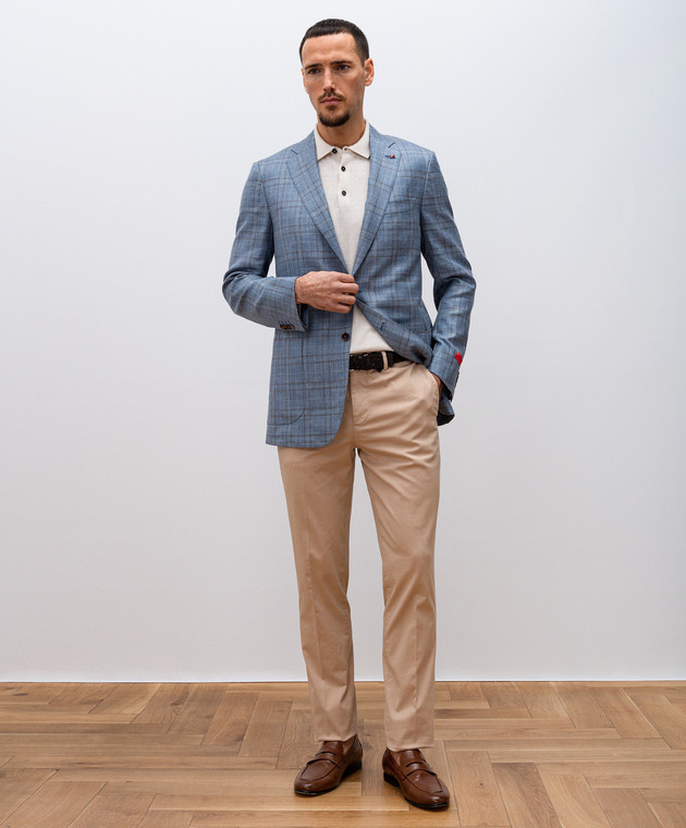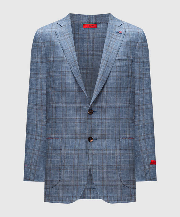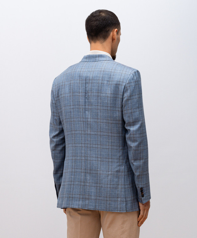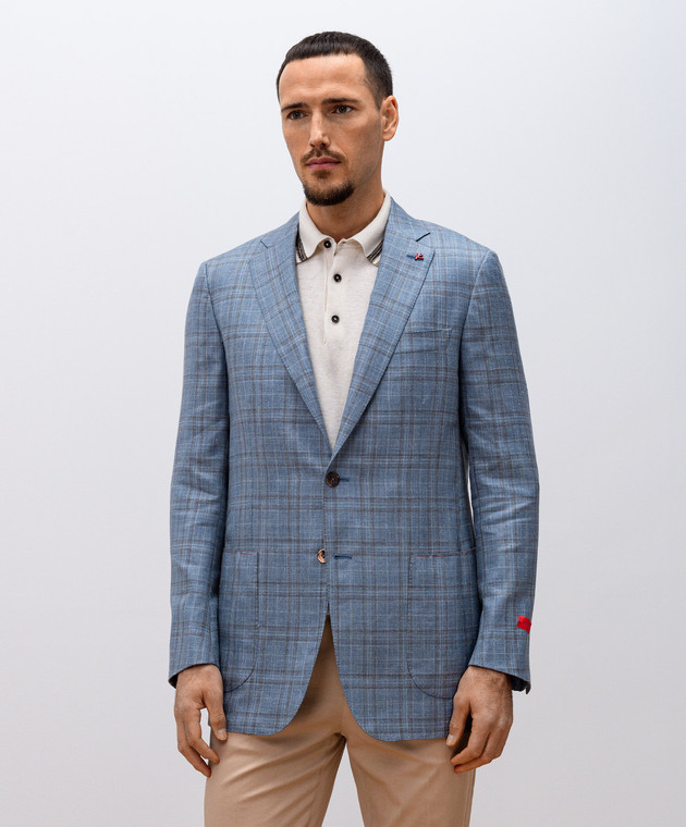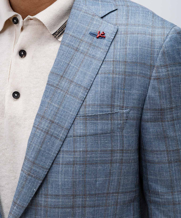 Голубой блейзер из шерсти, шелка и льна в клетку