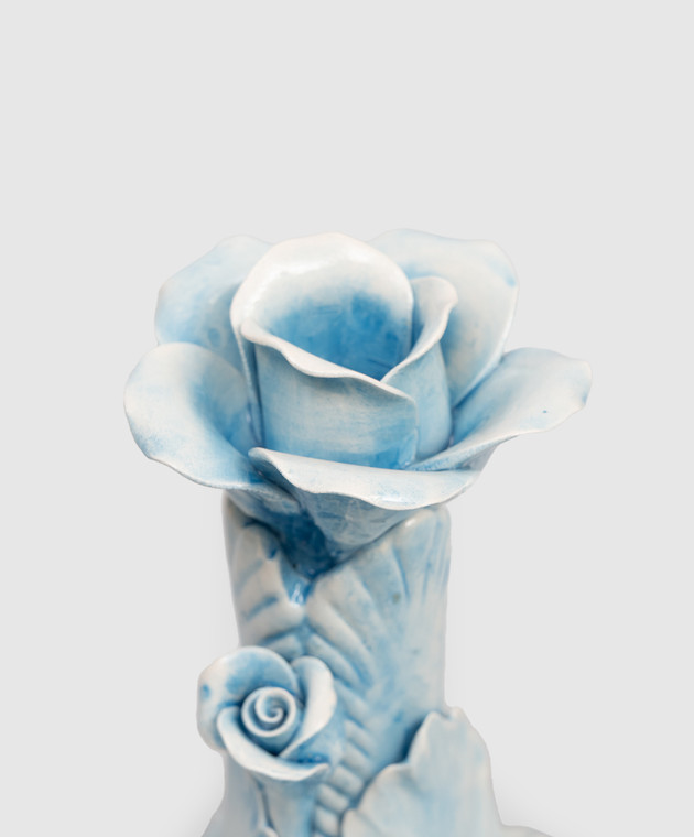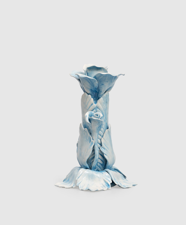 Голубой керамический подсвечник с цветами