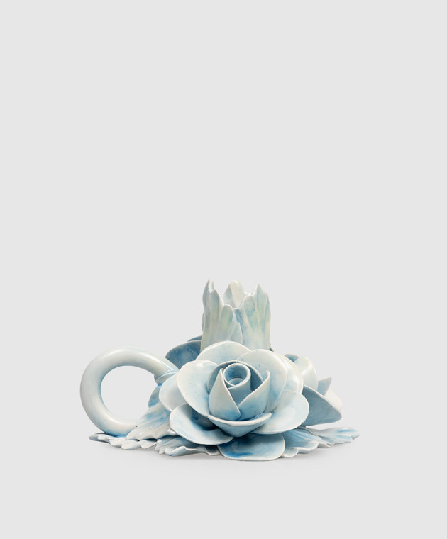 Голубой керамический подсвечник с розами