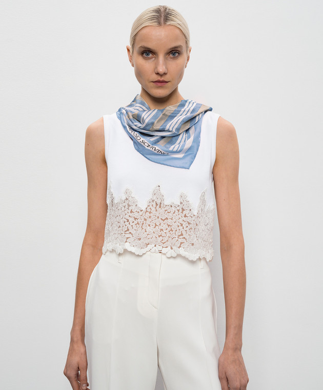 Голубой платок из шелка в полоску