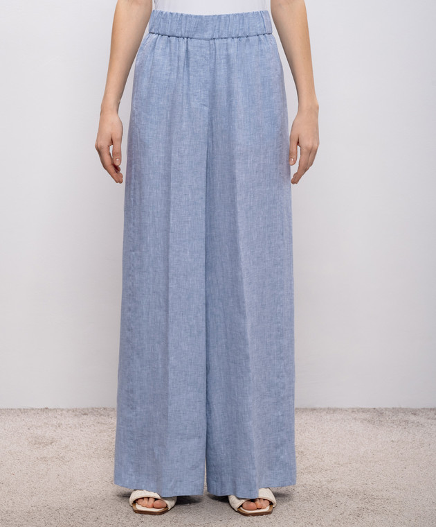 Голубые брюки из льна