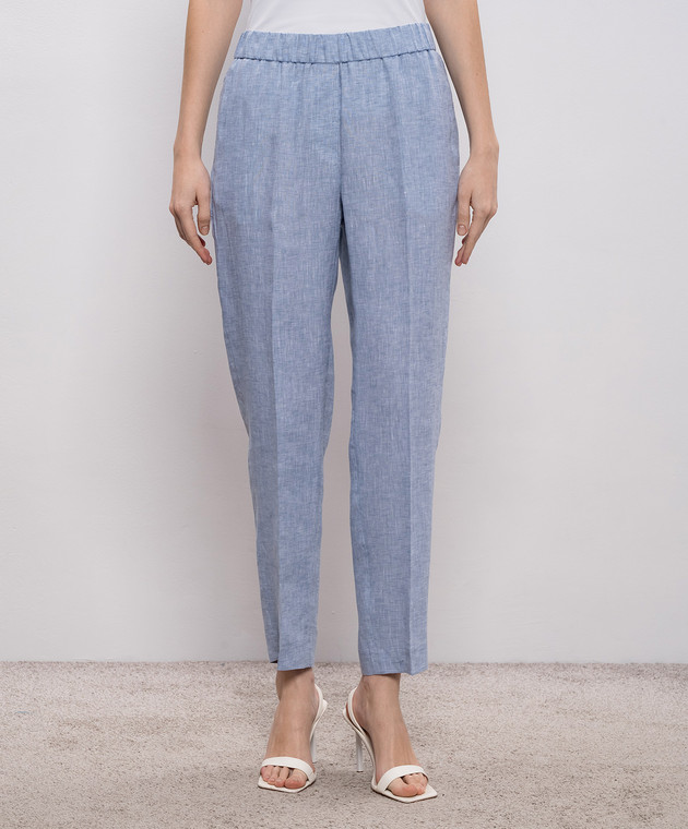 Голубые брюки из льна