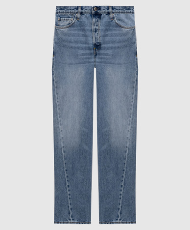 Голубые брюки из шелка с логотипом