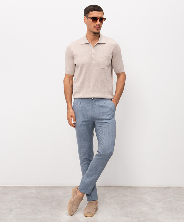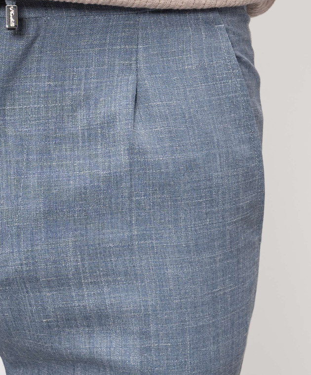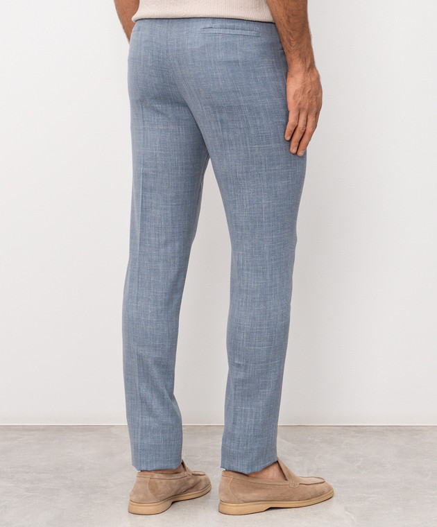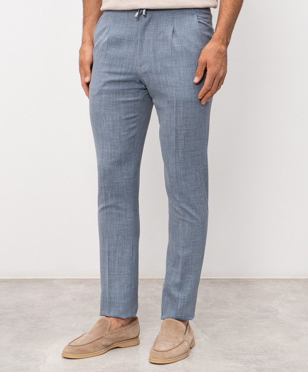 Голубые брюки из шерсти, шелка и льна