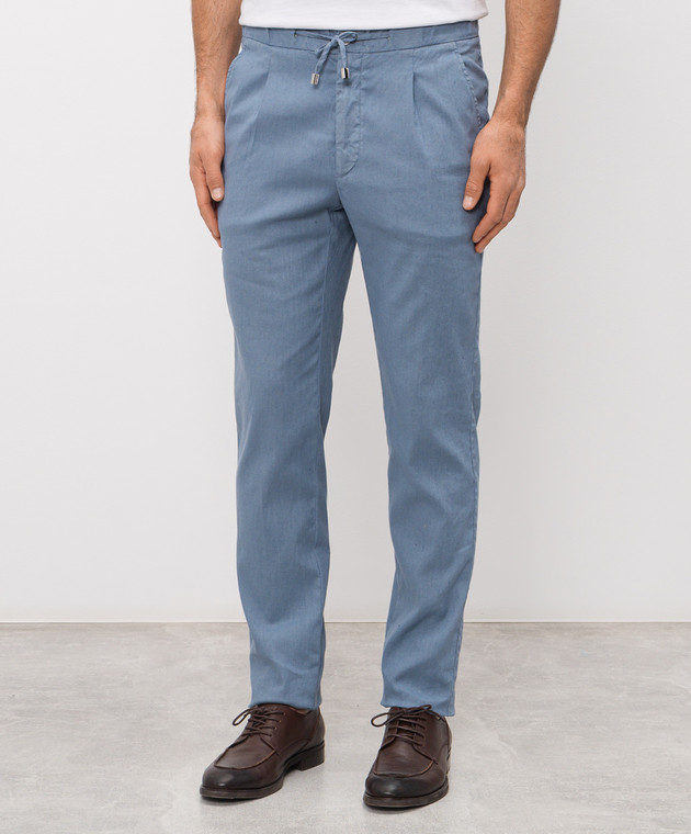 Голубые брюки с льном